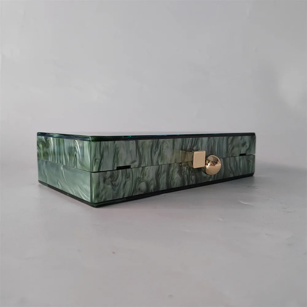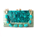 Esta Clutch Aquabella é a escolha perfeita para adicionar sofisticação e glamour a qualquer look. Seu design deslumbrante é uma verdadeira joia feminina. O impressionante tom turquesa do exterior de acrílico evoca a tranquilidade de um oásis tropical