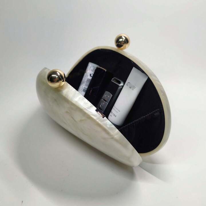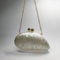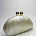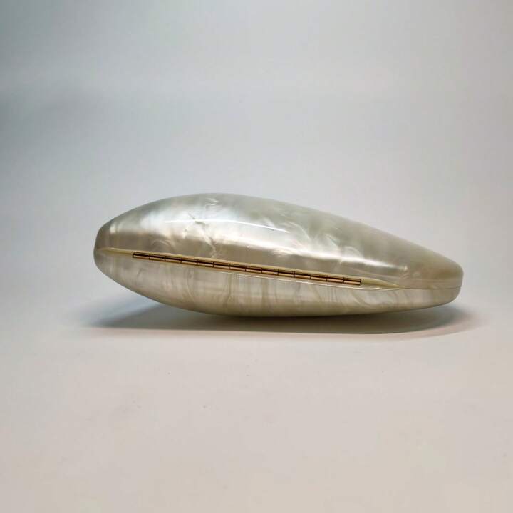 Leve a elegância e sofisticação com você, a Clutch Madrepérola Rumena feita com materiais de alta qualidade, sua cor iridescente brilhante torna-se o destaque perfeito para seu evento.