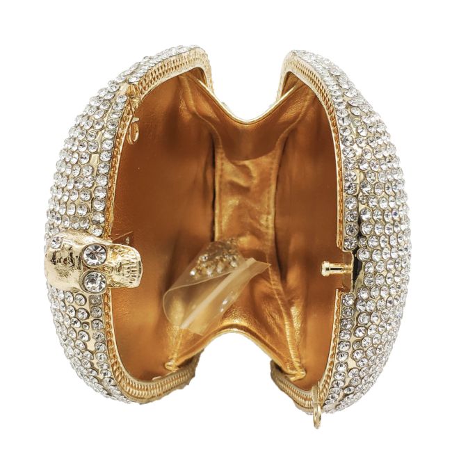 The crystal-studded skull detail seems to hold secrets, shining brightly under the lights of the party. Its compact size carries the essentials, but it’s its fascinating design that really catches the eye, like a rare jewel amidst the darkness.