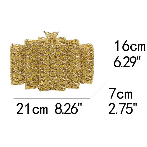 This crystal clutch bag is an exquisite accessory for special occasions, featuring a stunning design with iridescent detailing. The bag comes with a short, detachable 50cm chain, offering versatility in how you carry it. The interior is the perfect size to hold essentials including your keychain, lipstick or lip gloss, powder, a small brush, a few credit cards and a pair of glasses. Ideal for adding a touch of glamour to any formal event.