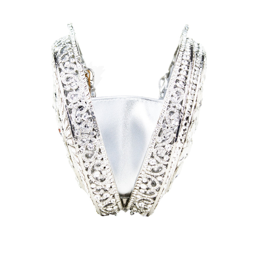 The Jumana Aurum Clutch shines in gold and carefully cut crystals, with a sculptural design and celestial glow, it is a rare piece — made for women who not only enter, but bless a room with their presence.