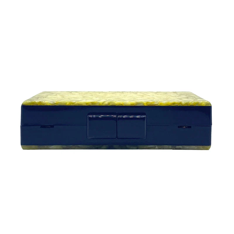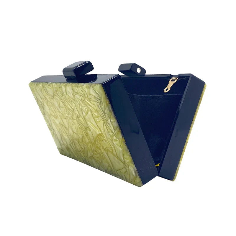 Inspired by the vibrant and mysterious essence of Ibiza nightlife, the Limon Blue Clutch combines sophistication and boldness. Its navy blue tone, illuminated with the color of lime, evokes the magic of the lights and the effervescent energy of the island.