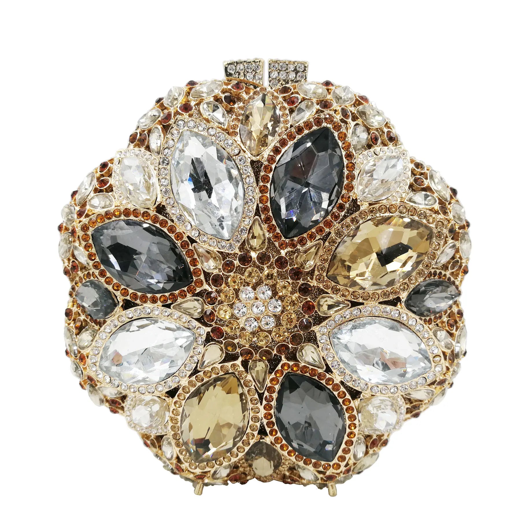 Adorned with large, luminous gemstones and diamonds that capture and reflect the light in a spectacular way, the Santorini Clutch exudes sophistication in every detail. A true sparkling treasure that elevates your look to a new level of glamour and exclusivity.